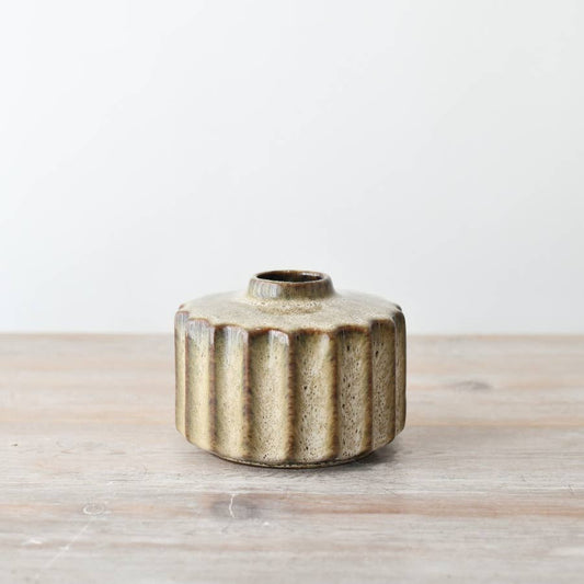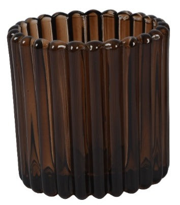 Brown Ribbed Tea Light Holder