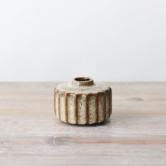 Brown Ribbed Tea Light Holder